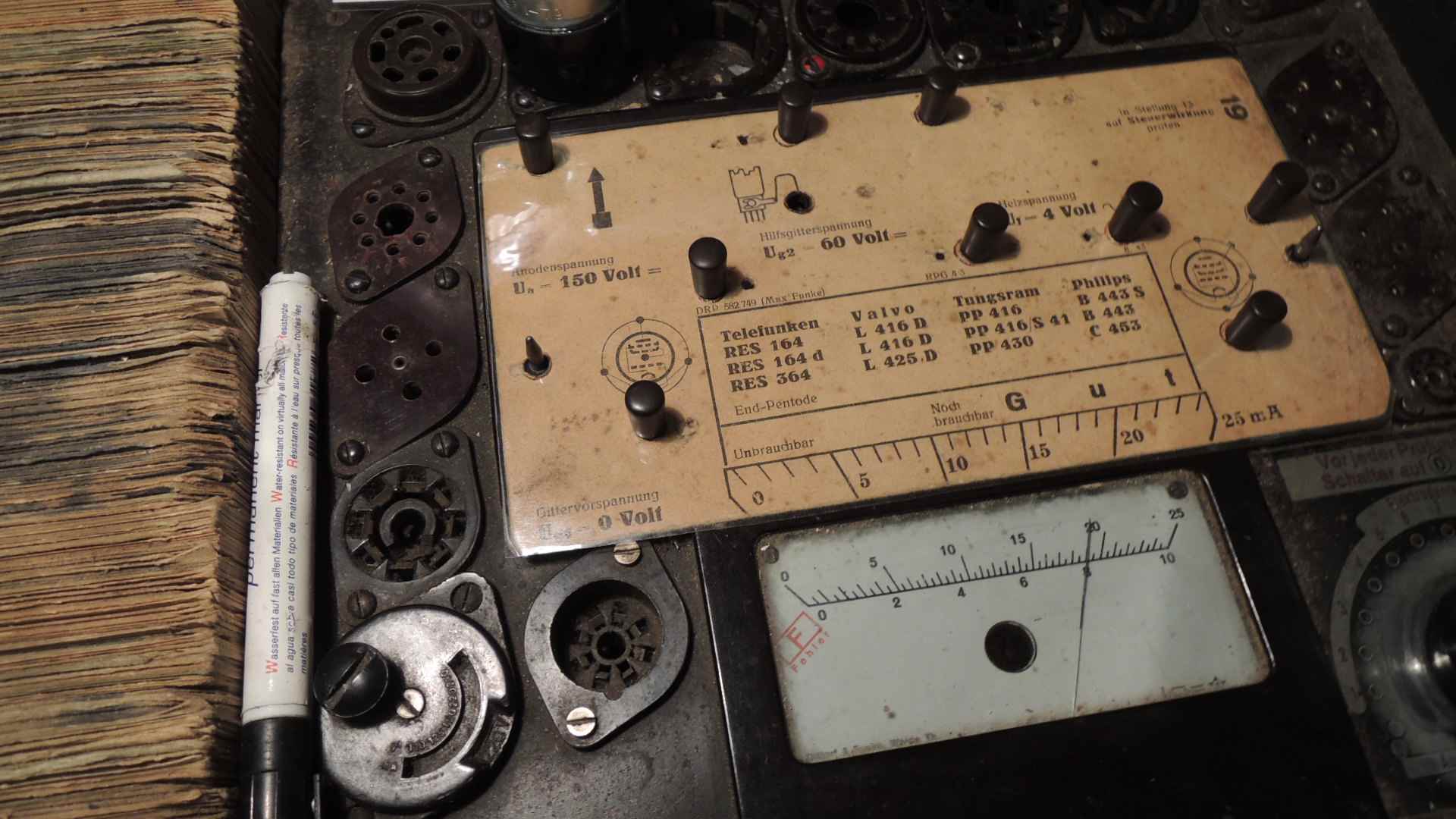 Im nächsten Bild die fertige Röhre 4P1L als RES164/e das Konstrukt wurde im Röhrenprüfgerät gemessen. Im Volksempfänger geht sie sehr gut.