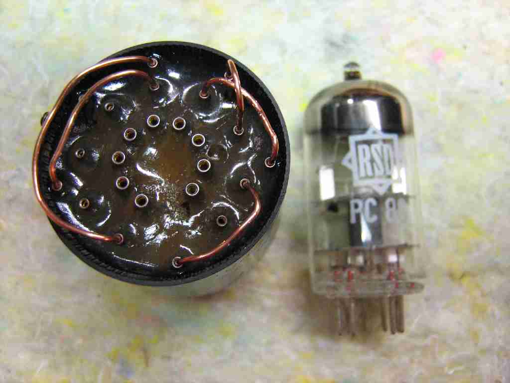 wir sind uns einig, moderne Röhren bringen mehr. Dein Experimentiersockel sieht interessant aus. Ist der mit den Drahtbrücken frei konfigurierbar ? Für die alten deutschen Röhren mit kleiner Leistung und Außenmetallisierung plane ich, Ersatzröhren mit Hilfe der modernen Novalröhren zu bauen. Da kann für erste Tests Dein variabler Testsockel sehr hilfreich sein. Meine Idee ist, amerikanische Röhren der 600mA-Heizstromserien (in USA mußte man die Fernseher ja an 110V betreiben) zu benutzen. Diese Röhren haben Heizspannungen zwischen 3 und 4 Volt, und es gibt eine größere Vielfalt als bei den P-Röhren. Noch kann man die Röhren auch preiswert kaufen. Eine REN904 oder AF7 - Ersatzröhre will ich auch äußerlich möglichst originalgetreu nachbilden. Die ersten Versuche will ich mit Gips machen. Unter dem Metallisierungsanstrich und mit einem schönen Valvo-Stempel wird man dann kaum eine moderne Röhre im Bauch einer Gipsnachbildung vermuten :-) . Dreistes Vorhaben ?