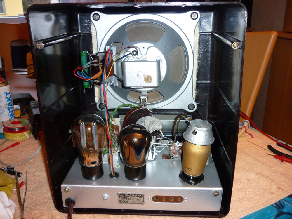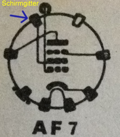 Zum Radio schenkte mir der Verkäufer eine 2. Röhre AF 7 dazu. Ein Tausch brachte keine Verbesserung, gleiches Fehlerbild. Fingerprobe auf der Kappe der AF7 produziert kräftigen Brumm im LS.