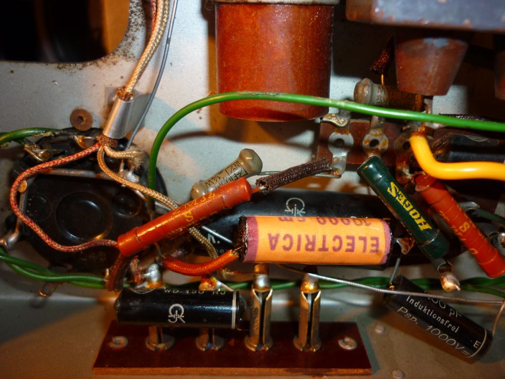 Nachstehend noch ein paar Fotos zum Gerät, insbesonders die mysteriösen Block-Kondensatoren.