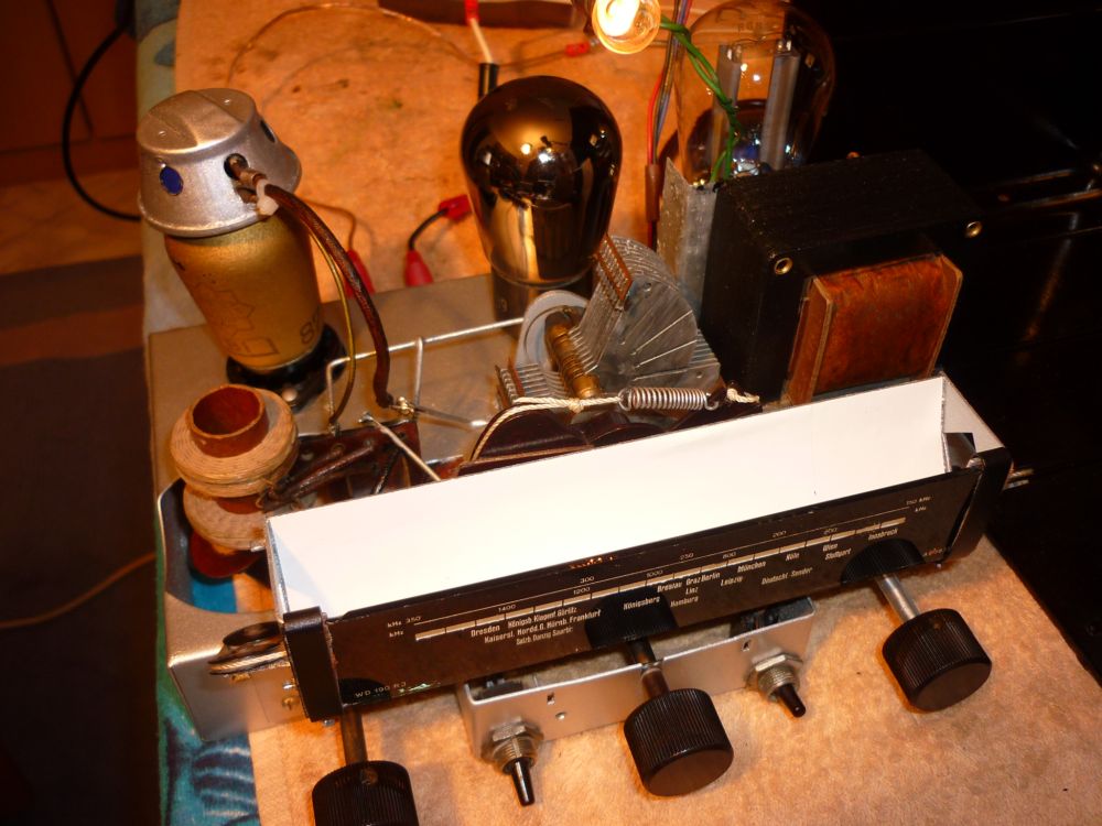 Zu meiner großen Überraschung fing es gleich an zu brummen, und nach ca. 10 Sekunden waren sowohl auf MW als auch auf LW Sender zu hören. An die Abstimmung durch Rückkopplung/Antennenkopplung mußte ich mich erst gewöhnen, da ich so ein Gerät noch nicht bedient habe.