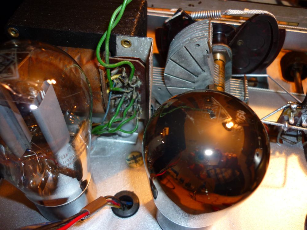 Bitte dazu die unten stehenden Bilder anschauen. Diese Kondensatoren habe ich noch nie in einem solchen Gerät auf Bildern gesehen. Sie scheinen aber original verbaut zu sein, sauber eingeschraubt.