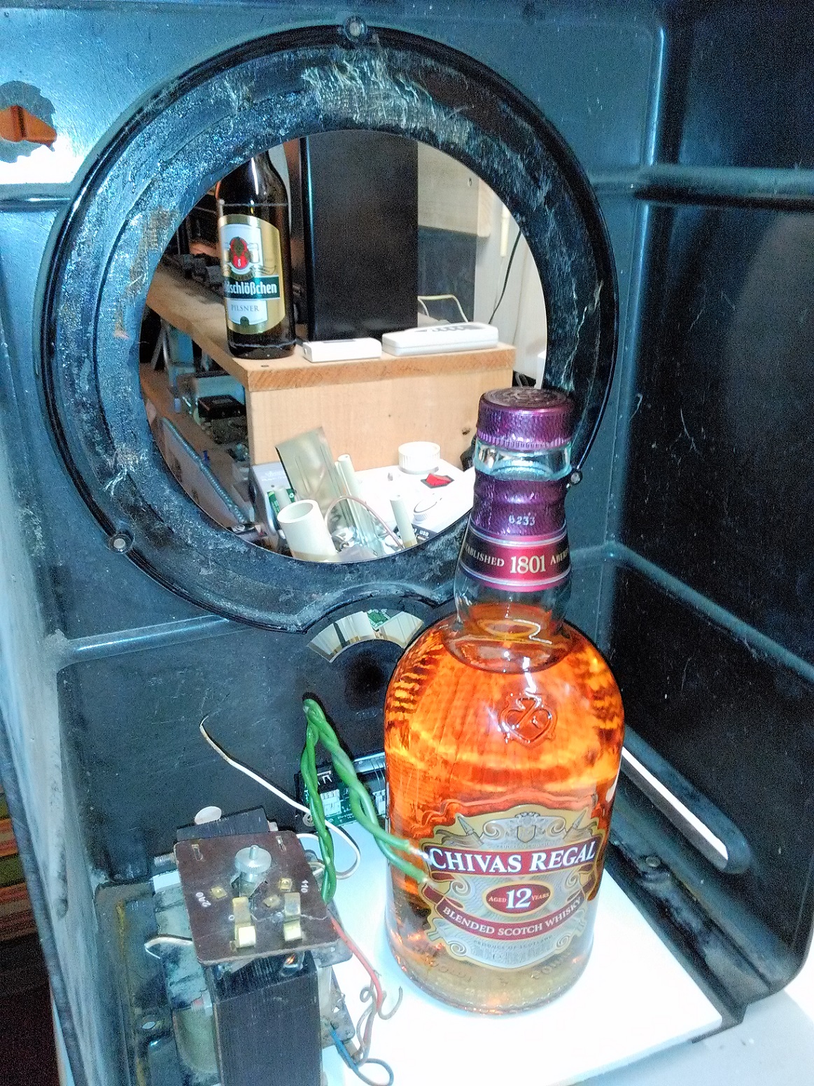 Mittlerweile habe ich email von 'nem OM (old man) mit 73 bekommen, der meinte, es sollten wenigstens noch paar Flaschen drin sein. Ich hab mal ausprobiert, wie das passen könnte: