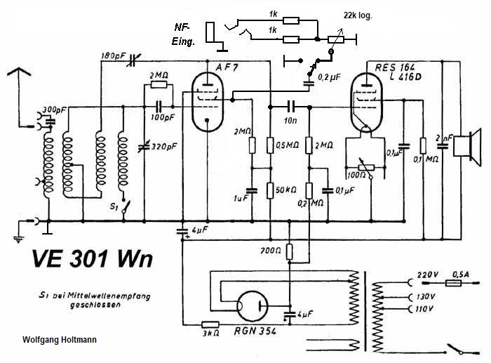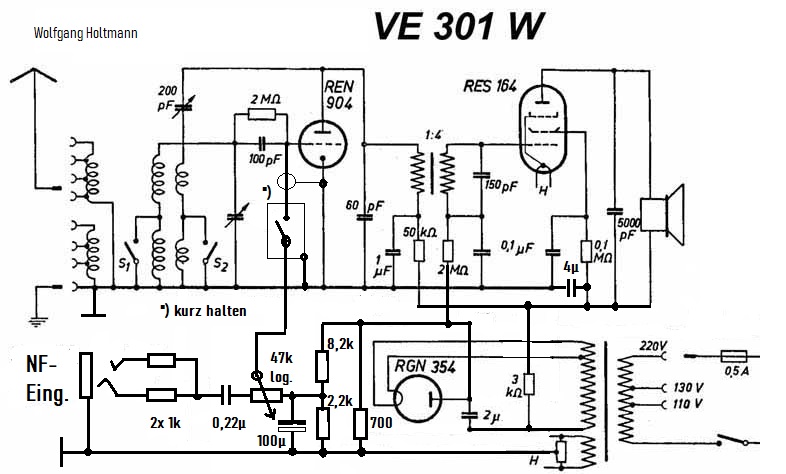 Gut, es geht jedoch hier um den VE der, aus bekannten Gründen, auf ein möglichst günstiges Preis-Leistungsverhältnis entwickelt wurde. Eine gute (!) NF-Drossel von mehr als 300H ist teuer in der Herstellung und hat als Nachteil eine Beschneidung der Audiofrequenzen. Im VE301Wn hat man darauf verzichtet und durch die Anwendung einer Pentode trotzdem eine bessere Gesamtverstärkung gegenüber dem VE301W erreicht.