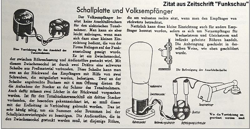 Weiterhin ist im bekannten Büchlein "Vom ältesten zum neusten VE-Gerät" Autor: E.W. Stockhusen ein ganzes Kapitel zum gleichen Thema gewidmet. Diese Vorschläge mussten aus praktischen Gründen -auch für Laien- leicht durchzuführen sein!