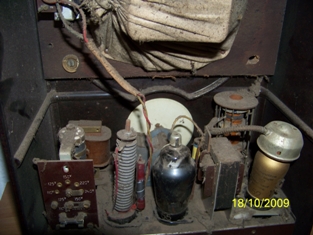 Das Problem ist, er wurde wahrscheinlich umgebaut. Ich möchte ihn wieder so restaurieren, wie er war. Anhand der Bilder seht ihr, dass er anstatt 3 Röhren , nur zwei Röhren hat. In dem dritten Sockel scheint ein Leistungswiederstand eingebaut zu sein Auch die beiden Röhren haben eine andere Bezeichnung Y52 und Y55. Einen Schaltplan von einem 301 GW habe ich. Lautsprecherspannstoff und einen Originallautsprecher versuche ich über *(W)* zu ersteigern. Zu meinen Fragen: