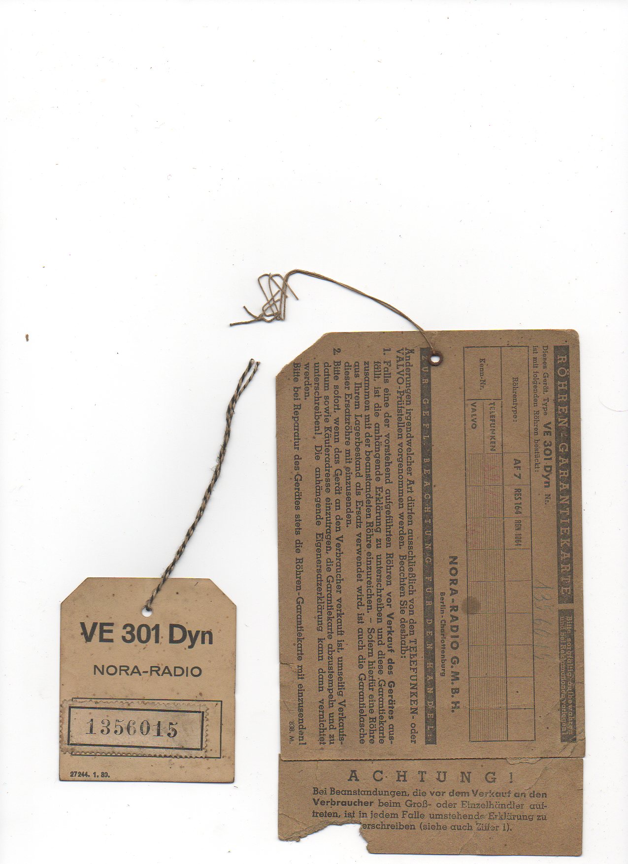 Als ich also meinen VE aufschraubte entdeckte ich zwei Zettel. Zum einen war das eine originale unausgefüllte Röhrengarantiekarte, auf dem anderen stand die Seriennummer (werde ich alles einscannen falls gewünscht).