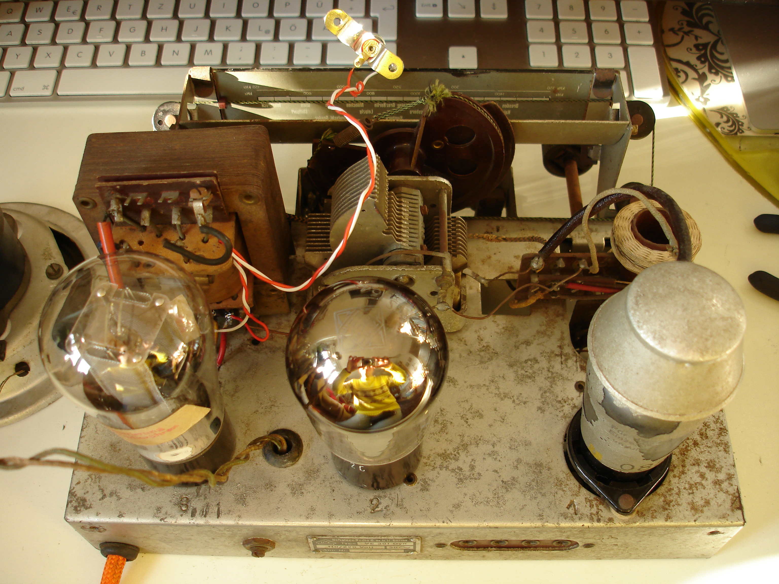 Eine komische Sache die mir aufgefallen ist: Auf dem Röhrensockel von der RGN1064 hängt statt ein 450 Widerstand ein 700. Ich gehe davon aus, da man dieses Radio mit einem nicht - originalen Trafo betreibt, sollte man auf ein Paar Umstellungen achten.
