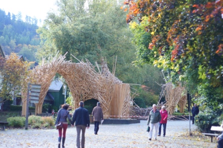 Sehr interesannt war auch eine im dierekt neben dem Haus des Gastes im Kurpark installierte Kunst aus Holzlatten,welche schon morgens teilweise eingestürzt war.Sie brach dann mit Getöse während der Börse weiter zusammen,bin mal gespannt was der Künstler dazu sagt.Habe mich dabei an einen weltberühmten chinesichen Künstler erinnert der auf der vorletzten Documenta ein Kunstwerk errichtet hatte das während eines Sturms zusammenbrach und er meinte dazu-es sähe jetzt viel besser aus. mfg.Joachim.