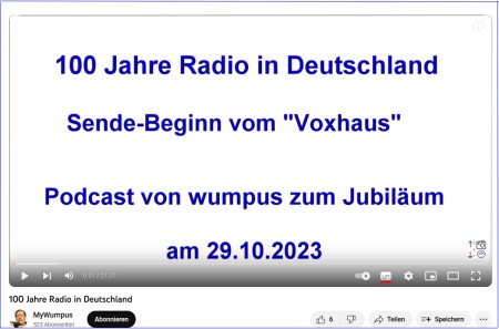 auch an dieser Stelle einen Hinweis auf meinen podcast (der aber eigentlich kein podcast ist) zum Thema "100 Jahre Radio in Deutschland". In diesem Audio teile ich einige Gedanken zum Thema in 21 Minuten mit.