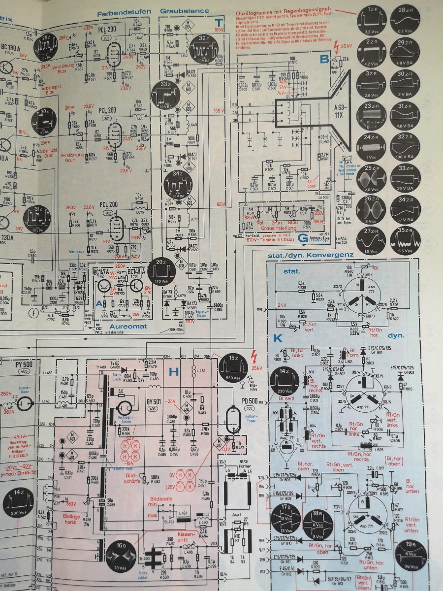 ..Danke Debo !! man kann doch alles super erkennen (so stell ich mir gute Pläne vor, farbliche Unterscheidungen, gute Strichstärken, übersichtlich, der Wahnsinn... , das hilft bestimmt sehr weiter, so hatte ich mir die BiRö-Ansteuerung vorgestellt, damit ist die Fehlerursache am g2-Teiler sowie an den Kathoden und der Steuergutter (Wehnelt) problemlos möglich. Wo die Helligkeit verstellt wird, kann man ja noch ermitteln...