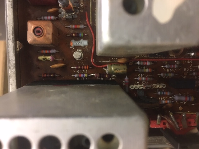 Vielleicht habe ich hier noch ein sehr frühes Modell, da einige Kondensatoren Datumscodes von Januar 1967 tragen und der Tuner mit Februar 1967 gestempelt ist.