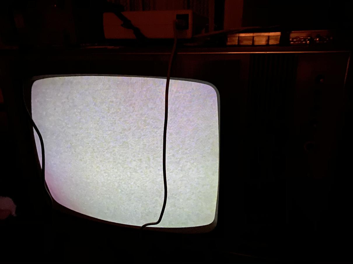 Nun kann man ein Bild erkennen, wenn man das Licht ausmacht. Man kann auf dem Foto sehen das glühen der Röhren auf der Rückseite ist nicht viel dunkler.