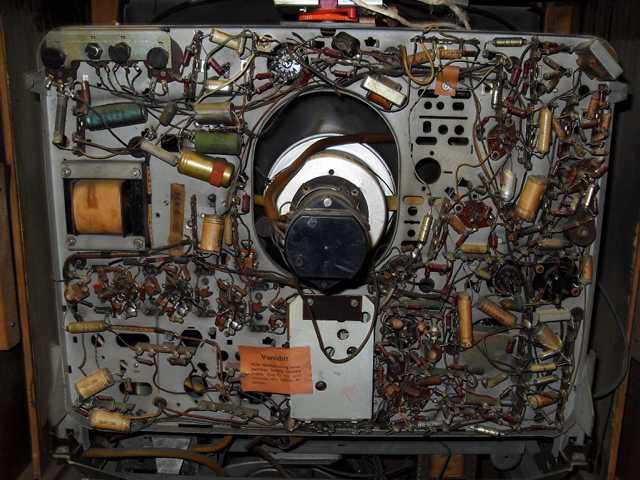 Hier nun mal ein paar Bilder meines anderen "Kurfürsten" Modell F171.Bei diesem wurde ebenso nicht versucht ihn in Betrieb zu nehmen.Er stand auch jetzt gute 2 Jahre trocken in meinem Arbeitszimmer. Der Zeilentrafo sieht bei ihm schon besser aus,nichts "gepfuscht" und ist zudem schon teilweise vergossen und nicht offen wie bei dem F44,Röhren auch alle entsprechend der Chassis bezeichnungen: [img][/img]