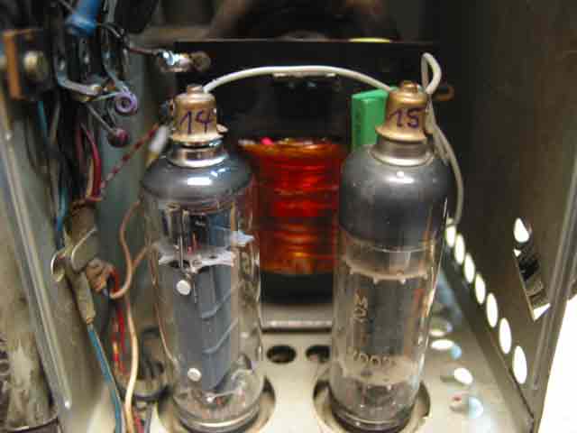 Will sagen: Es muss bei rot glühender Zeilenendstufenröhre nicht immer der Zeilentrafo oder das Hochspannungsteil defekt sein. Es kann auch an fehlender Ansteuerung aus der Zeilenoszillatorstufe liegen oder aber an einer positiven Einkopplung einer Spannung an das Steuergitter (Gitter 1) der Zeilenendstufenröhre. Auch dann beginnt die Zeilenendstufenröhre rot aufzuglühen.