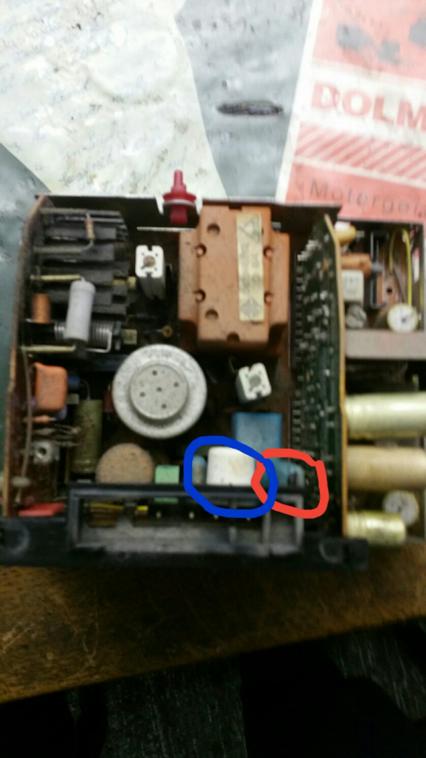 Hallo, Mein Neuzugang macht mir leider Probleme. Als ich ihn mit dem Trenntrafo hochfahren wollte platzte im Inneren ein Wima Kondensator (Rot markiert) der mittlerweile gewechselt wurde. Das weiße Bauteil daneben könnte aber kaputt sein da es im Inneren rappelt (blau). Es stehen leider nur zahlen drauf weshalb ich nicht weiß was es ist. Achja Chassis ist das 514. Nun habe ich aber immer noch ein Problem. Und zwar wird die Bildröhrenheizung automatisch abgestellt. Wenn man den Fernseher einschaltet, heizt sie für ca. 10 Sekunden, dann meine ich ein leises "Klick" zu hören und sie geht wieder aus. Manchmal hat man Glück und er läuft für eine Minute. Der Ton ist davon nicht betroffen. Der funktioniert . Vielleicht weis ja jemand von euch Rat.
