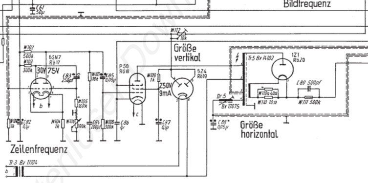 Ich habe einen zweiten 852D, den habe ich noch länger, und bekam ihn als restauriert. Funzte aber nicht, daher landete er erstmal im Keller. Letztlich war nur ein Widerstand im Zeilenoszillator defekt (W102 oder W103, weiss nicht mehr genau). Bei dem Gerät geht der Booster-C nach Masse, und die 1Z1 ist bereits gegen eine PY86 o.Ä. ausgetauscht worden. Funzt jetzt recht gut, daher bekam ich Lust den "originaleren" auch zum Laufen zu bekommen.