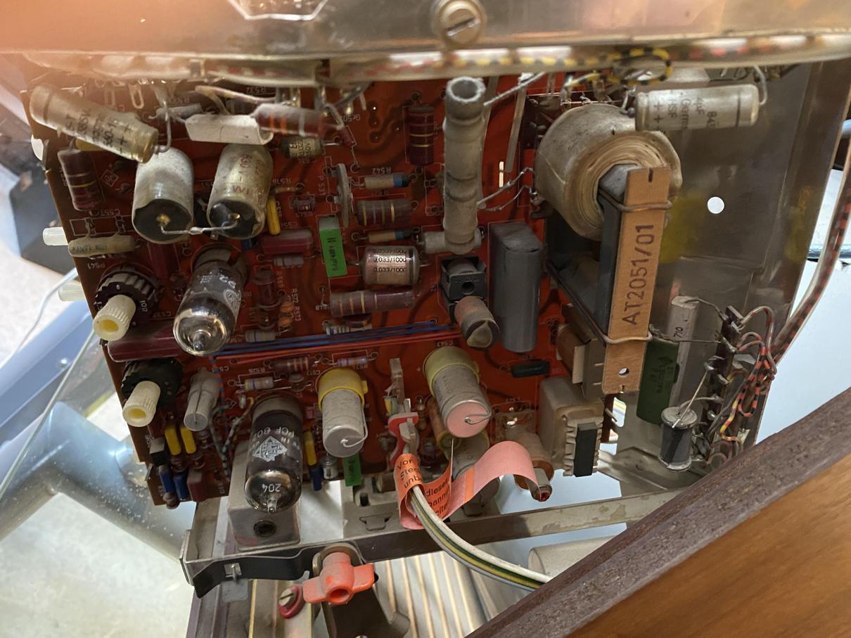 ja sieht noch super aus! Gründlich reinigen und es kann losgehen. Was hat der für eine Farbendstufe? Ich sehe keine 3x PCL200. Hat vielleicht schon transistorisierte Farbendstufen? Dann dürfte der aber nicht mehr 1967 sein, sondern 1-2 Jahre jünger. Nett auch der Röhrenvorrat von Siemens Röhren im Gerät!