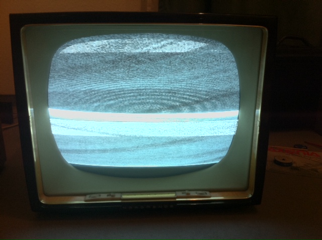 ein kleiner Zwischenbericht: Ich habe einen großen Teil der Kondensatoren ausgetauscht und nun kann man ein Fernsehbild sehen, das stabil bleibt (siehe anbei). Auch die erwähnten Röhren (PCL82) habe ich ausgetauscht. Der Tipp mit dem Kältespray war wirklich gut, den größten Übeltäter (0,022 uF/1000V) habe ich damit schnell gefunden.