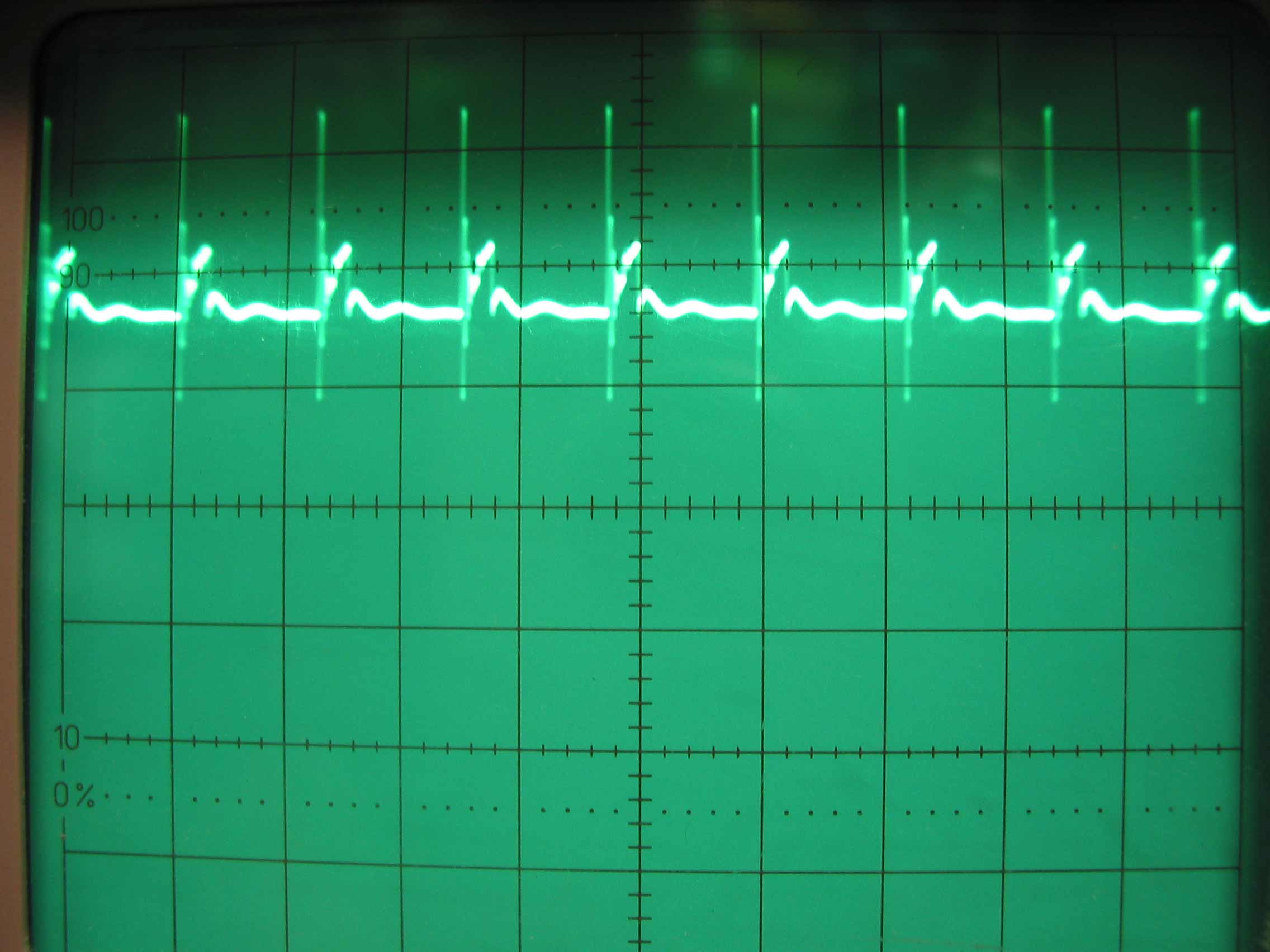soll das obere Bild vom Gitter 1 der Zeilenendstufe sein? Wenn ja, würde ich mir mal den Koppelkondensator zum Gitter 1 von der Oszillator-Stufe ansehen. Zieht die PL81 starken Gitterstrom, bekommt sie rote Wangen....