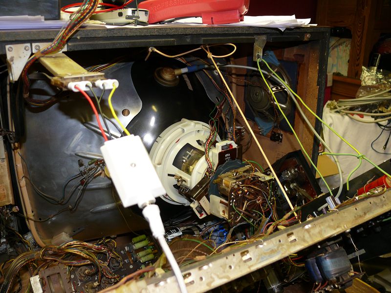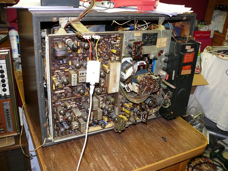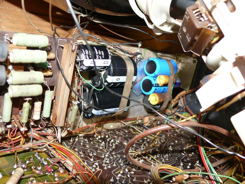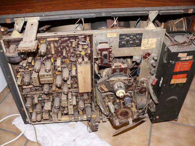 Hier ein paar Bilder: In Betrieb: Chassis so gut es ging gereinigt: Netzteilkondensatoren: Gereinigte Röhre/Innenleben: Vor der Reinigung: