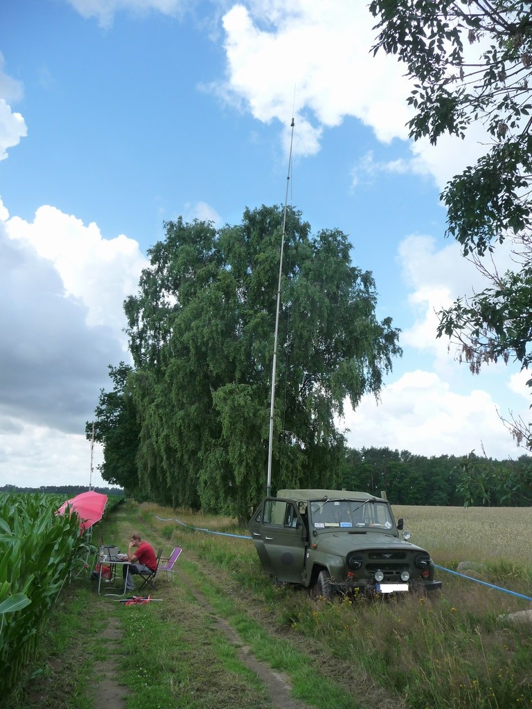 Die aktive Breitbandantenne meines Freundes brachte auch nicht den gewünschten Erfolg, auf Kurzwelle ging sie wie Sa..., bis DCF77 runter ging auch sehr gut, aber 17,2 kHz wollte sie wohl nicht. Befestigt war die Antenne 10 Meter über Grund am "HTM10" (Halbteleskopmast 10 Meter) des UAZ-Geländewagens. Naja, wir üben dahingehend weiter...