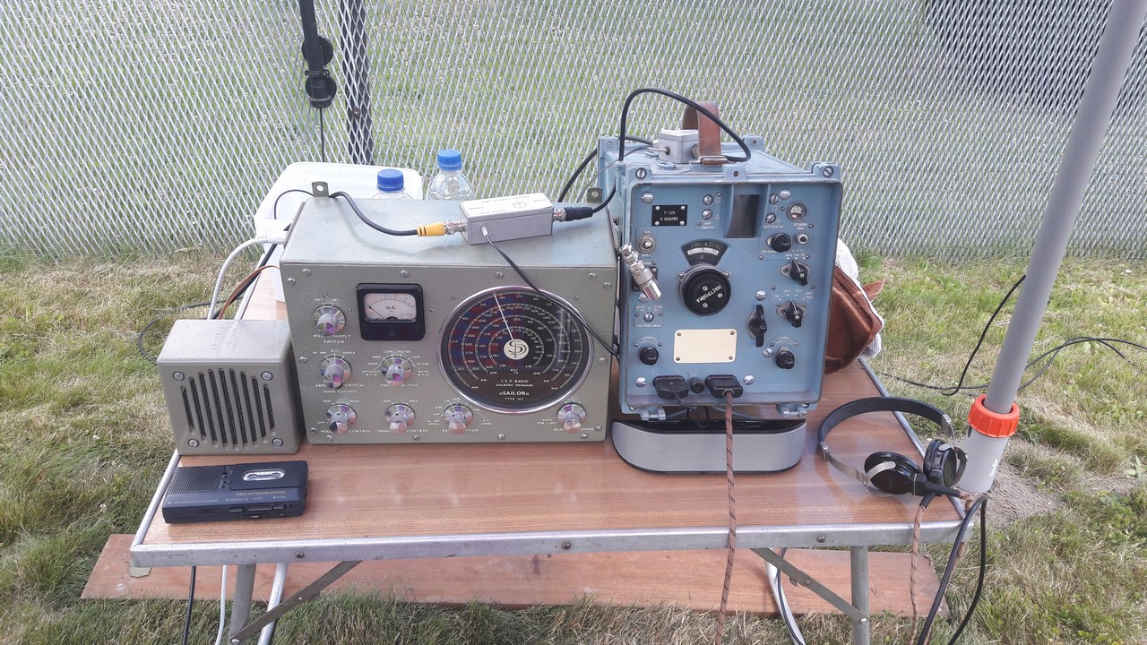 Ich war mit meinem russischen Empfänger "P-326" und meinem dänischen Empfänger "Sailor 16T" am Start. Jeweils mit Up-Konverter mit Ausgabe auf 3 MHz. Antenne war meine bewährte "VLF 1", die wieder leicht modifiziert wurde. Die Drehkondensator-Abstimmung wurde entfernt und die Antenne mit einem passenden Festkondensator auf Resonanz gebracht. Es war mir einfach zuviel "Geraffel" mit dem Drehko und den Umschaltern. Diesmal hatte ich auch zusätzlich meine Mini-Whip zum Testen mit.
