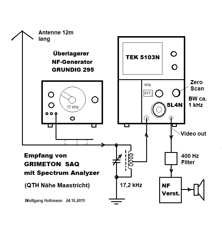 Die absoluten Pegel habe ich nicht gemessen, weil auch noch eine Antennenanpassung dazwischen ist, welche auf 19,6 kHz abgestimmt war. Der Engländer kommt hier nur schwach an... Etwas darüber müsste der Italiener sein?