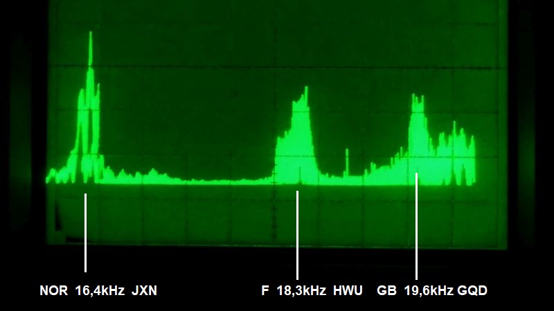 ich denke auch, dass das etwas breitbandigere System bei 20,3 kHz der Italiener ist. Übrigens hast Du den Russen aus der Barentsee auf 18,1 kHz, der auf der Flanke zum Franzosen liegt, unterschlagen. Das System tastet wesentlich langsamer um als der Franzose, deswegen kann er nicht dazugehören, wie ich ursprünglich dachte. Aber deine Spektrumaufnahme brachte hier Klarheit.