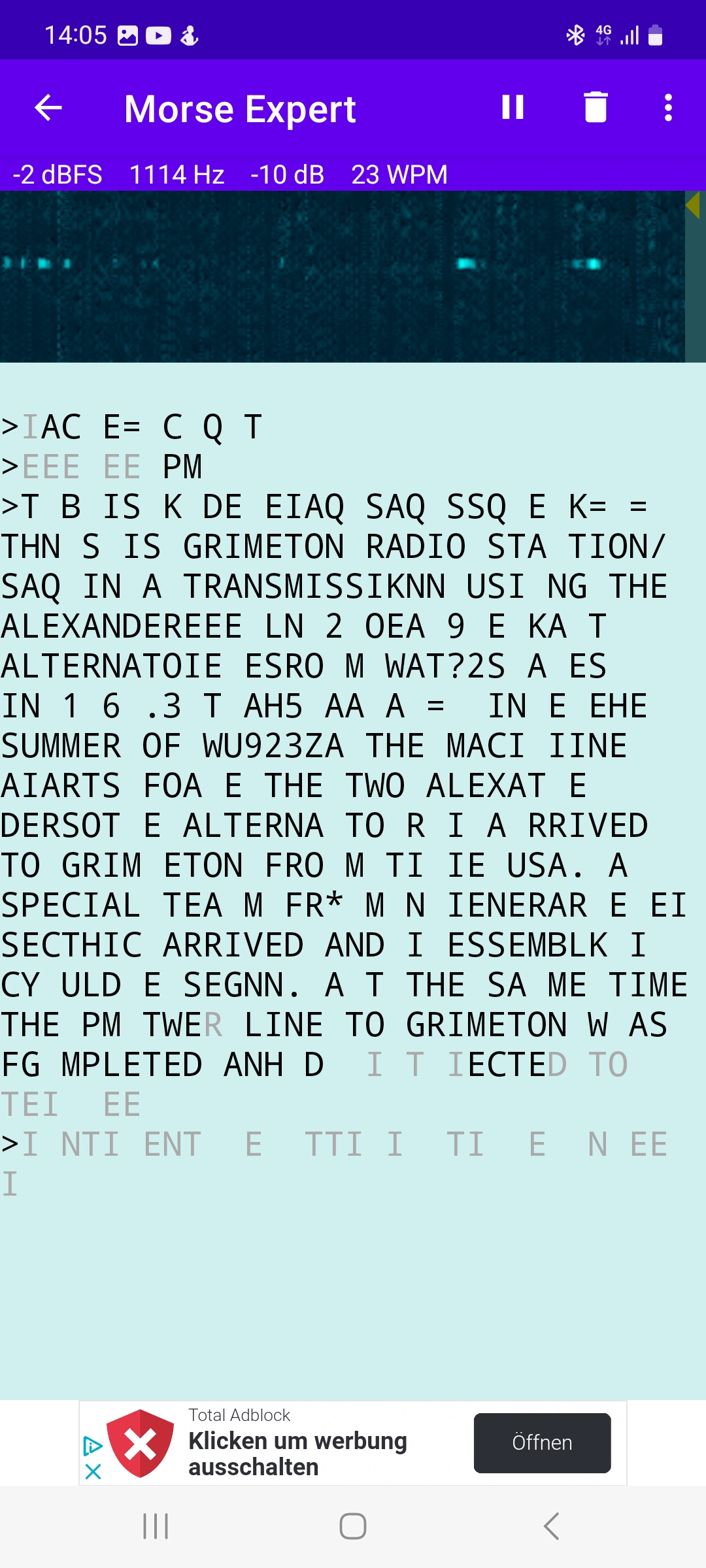 Der Tecsun PL660 an MiniWhip ging wie immer nicht so gut. Der SPM3 hat einfach die besseren Filter. Es reichte aber für eine sehr lückenhafte Dekodierung mit dem Handyprogramm: