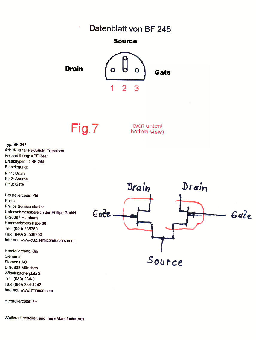 Die Schaltung zeigt einen von mir beschriebenen Feldeffekt- Transistor. Ala Ersatzlösung wäre eine Nachbildung mit zwei Einzeltransistoren, zum Beispiel BF245, möglich. Diese sind eng zu montieren, die Source- Anschlüsse sind zusammen zu schalten und Gate sowie Drain sind entsprechend der Schaltung einzulöten. Das Gate ist der mittlere Anschluß im Symbol. Warum bist Du der Meinung, daß der Originaltransistor defekt ist? Nach der Methode des Multimeters können solche Bauelemente nicht beurteilt werden. Die Wahrscheinlichkeit eines Defektes ist nach meiner Meinung gering. Vielleicht kannst Du etwas mehr zum vorhandenen Fehler sagen. Der Differenzverstärker könnte durchaus in Ordnung sein. Mit vielen Grüßen. Wolle