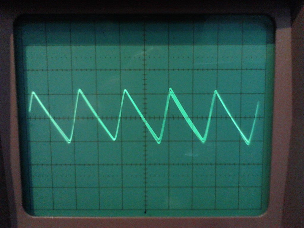 Erstens: Der Brummanteil auf der 15V Gleichspannungsschiene in Form eines Sägezahns hat 100Hz.