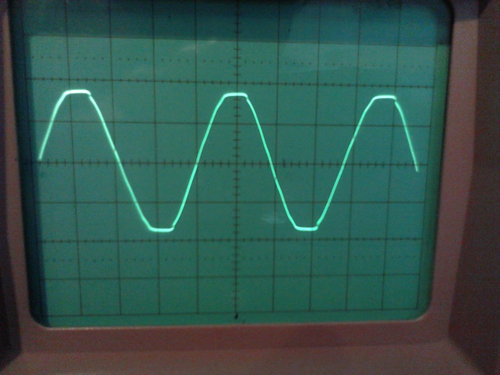 Hier noch drei Oszillogramme: Das erste zeigt den Brummanteil gemessen auf der Verstärkerplatine, das zweite zeigt die Gleichspannung direkt am Gleichrichter gemessen (da würde mich interessieren woher die Verfomung oben am Sägezahn kommt), das dritte zeigt die anliegende Wechselspannung am Gleichrichter. Die Ablenkung ist bei eins und zwei 5ms/Div und 0,2V/Div, bei drei 5ms/div und 10V/Div
