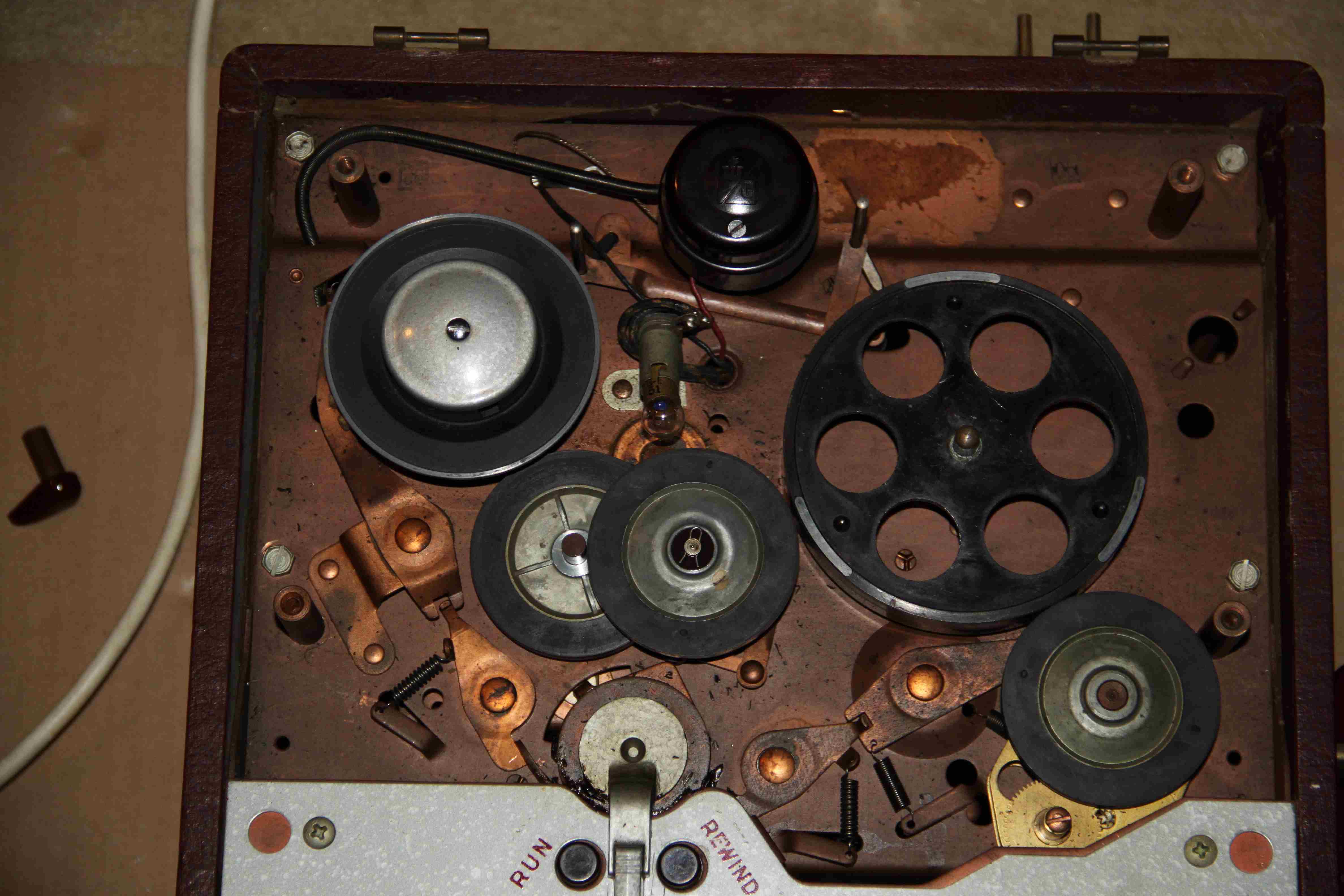 Hallo Joe, ja, "abgefahren" ist sie- manchmal im wahrsten Sinn, wenn man nicht aufpasst... Du hast Recht, das waren die Vorläufer der Tonbandgeräte - bevor es gelang, eine magnetisierbare Schicht auf einen Plastikstreifen zu kleben . Den Stahldraht sieht man auf den Fotos nicht, weil er wirklich haardünn ist, und deshalb auch mechanisch recht empfindlich. Er reißt ganz schnell, und wenn er etwas "verkringelt" ist, hört man das beim Abspielen recht deutlich als Knistern - auch bei meiner Aufnahme, wenn man genau hinhört. Laut Fabrikstempel im Inneren ist die Maschine Baujahr 1948. ich habe sie vor vielen Jahren von einem Studienfreund als Dachbodenfund bekommen und wieder zum Leben erweckt. Glücklicherweise war sie optisch wesentlich besser erhalten als die Baustelle von Jürgen. Vielleicht habe ich am Wochenende Zeit, mal das Innenleben zu fotografieren. Die Mechanik ist so solide, dass man die nächsten 100 Jahre keine Ersatzteile braucht - außer den bereits erwähnten Gummirollen, für die ich noch keine richtige Lösung habe. Hat aber auch keine Eile, denn im Dauereinsatz ist sie nicht mehr... Beste Grüße Wolfgang