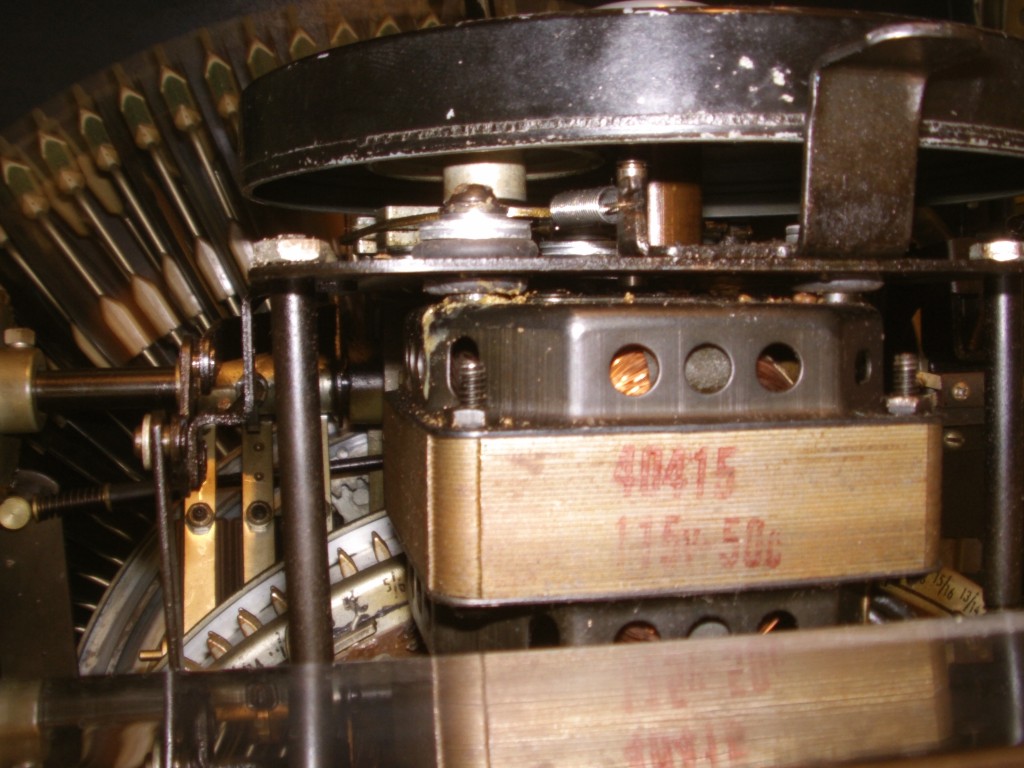 Als ich die Box zum ersten mal geöffnet habe war ich erstaunt, was für eine 'massive' Mechanik in ihr steckt. Auf der linken Seite befindet sich ein Hubmagnet, das nicht richtig durchzieht. Entweder ist der Schaltpuls zu kurz, oder die Spannung zu gering. Wegen der Mechanik bin ich aber vorsichtig und werde von der (Lautsprecher-)Seite versuchen an die Anschlüsse zu kommen. Für so eine Reparatur braucht es eher einen Automechaniker, statt eines Rundfunk u. Fernsehtechnikers.