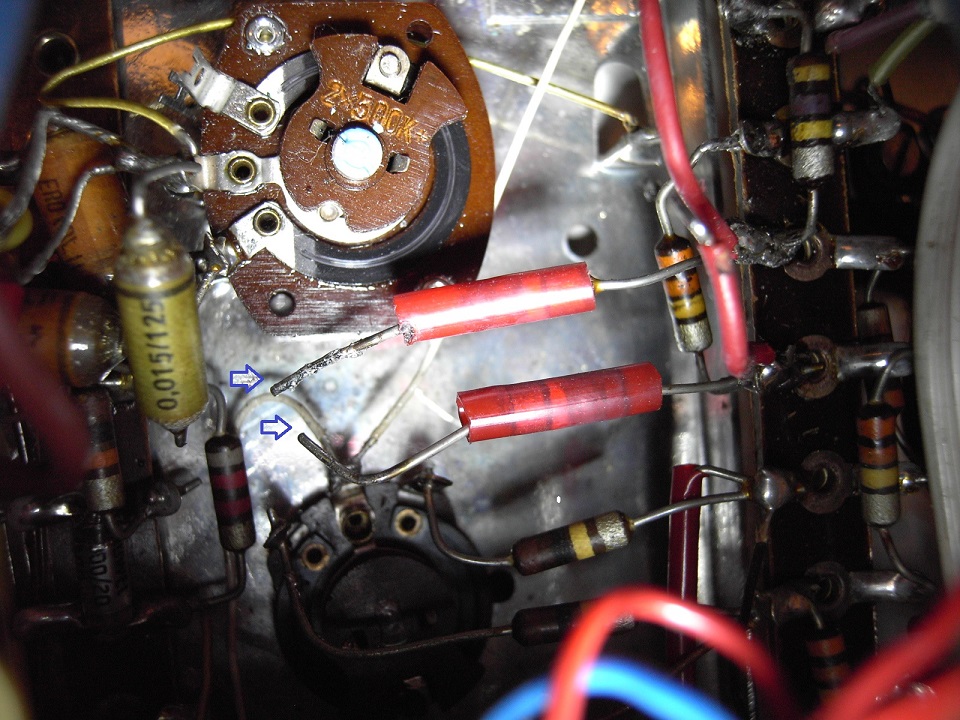 P.S.: Warum die beiden wohl mit einem Schrumpfschlauch isoliert sind? So frei, wie die waren. Rechts, die roten Drähte, sind die jetzt wieder offenen Brücken. Man weiß ja nicht.