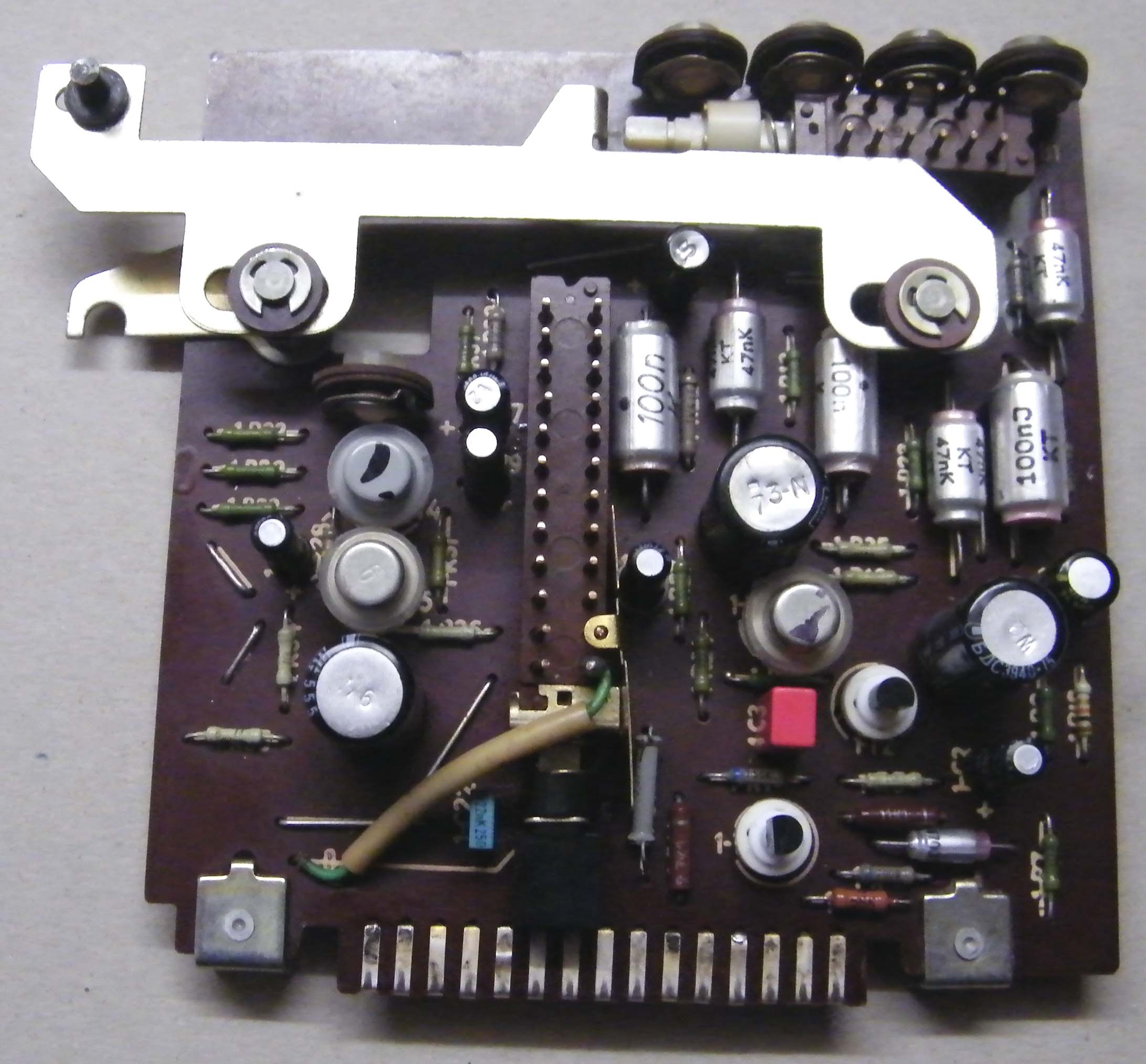 Nun steht nur noch der Vergleich mit dem fast original belassenem Gerät aus. In diesem habe ich nur die defekten Elkos gewechselt und paar frequenzbestimmende Papier-Cs in beiden Kanälen durch originale gleichschlechte Cs ersetzt. Als Tonkopf habe ich hier einen ZK246-Kopf eingesetzt. Der ist dem Originalen am Ähnlichsten. Die Originalen Köpfe waren bei den Spendergeräten alle ungleichmäßig und zu weit eingeschliffen.