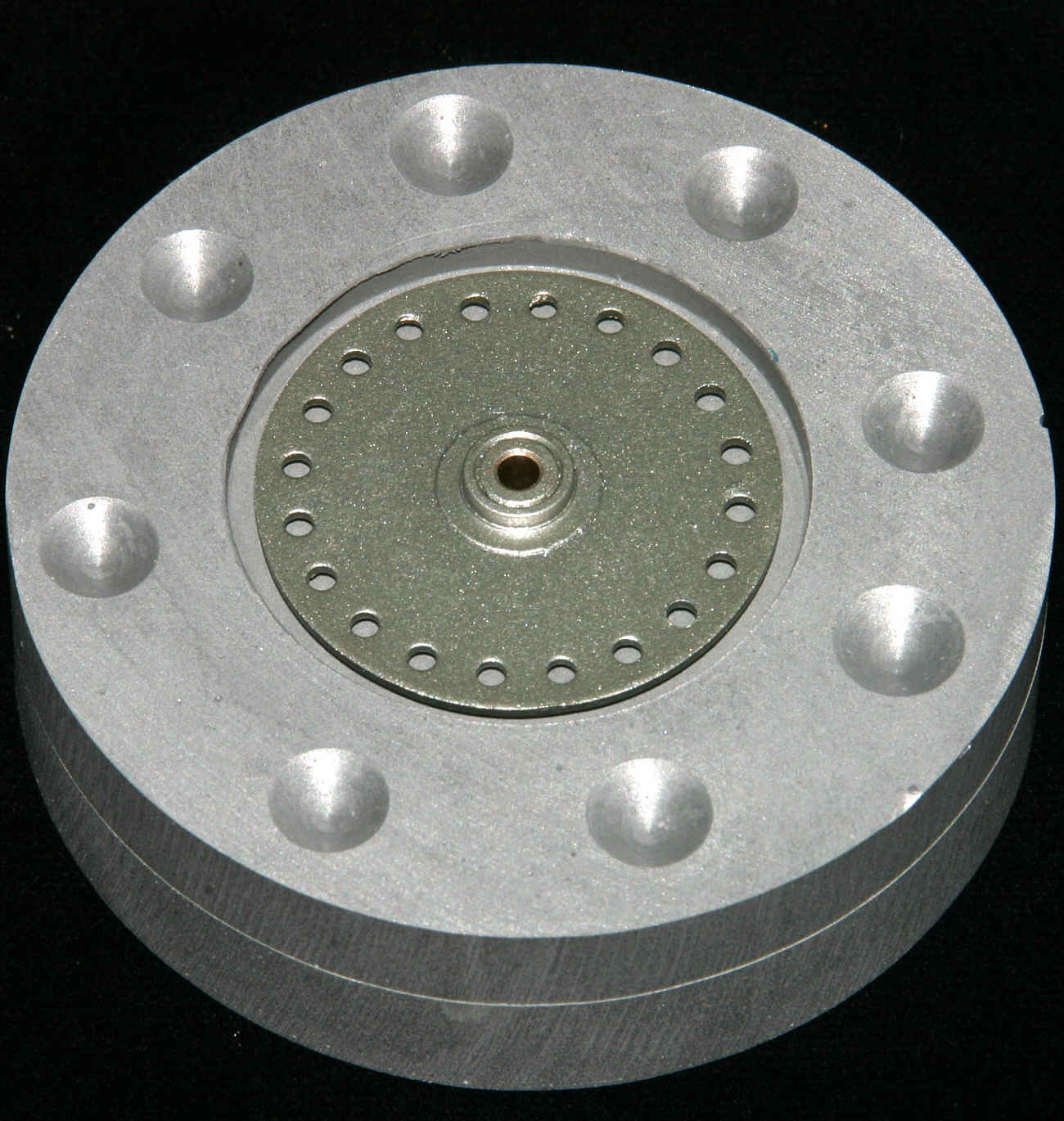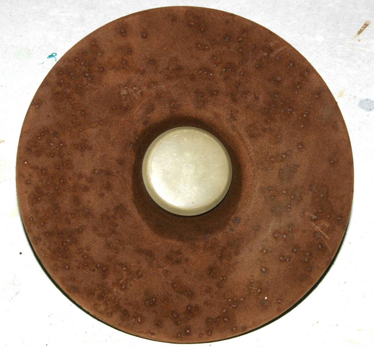 Die Überstände am Plattentellerrand schneidet man mit einem Skalpell oder einem Cutter ab. Kleine Ausfransungen die dabei entstehen, kann man mit einem Feuerzeug oder einem kleinen Brenner abflammen. Der Puk selbst wird noch poliert und die Restauration des Plattentellers ist abgeschlossen.