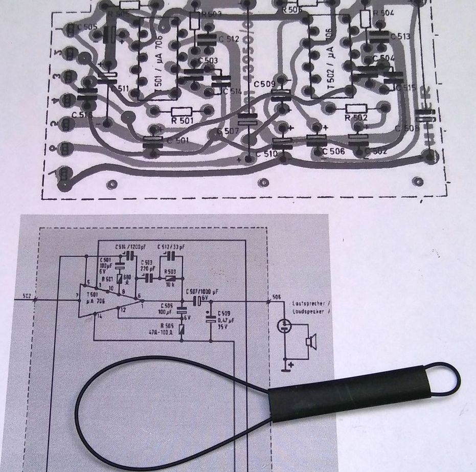 Der Vorbesitzer meines Gerätes kapitulierte offenbar an der Fehlfunktion der IC-Endstufe, wie die diversen Entlötspuren und Austauschbauteile zeigten. Hier kann ich nur Peters Äusserungen betonen, alle Elkos auf der kleinen Platine EINSCHLIESSLICH aller Tantalelkos auszutauschen, auch wenn sie ausgebaut an Prüfgeräten (womöglich mit Spannungen unter 3 Volt!) oberflächlich betrachtet noch gut sind. Testet man die ausgebaute Platine isoliert von dem Gerät, sollte man nicht übersehen, dass auch die NF-Eingänge eine Hauptversorgungs- spannung von MINUS 6 Volt benötigen. Ansonsten ziehen sie kaum Ruhestrom und es kommen nur verzerrte Amplitudenspitzen bei hoher Ansteuerung heraus.