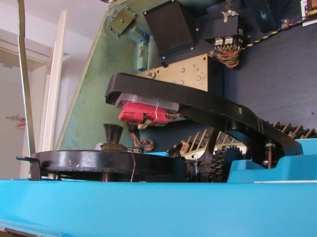 darauf wäre ich nicht gekommen, dass man damals schon mechanisch überwacht wurde. Jetzt verstehe ich aber auch warum man mit einem Hebel an dieser Trommel diese Stifte zurücksetzen kann. Ich hatte immer die Befürchtung, dass ich damit etwas gelöscht hatte. Zur Zeit zeigt sich wieder ein altes Problem. Ganz tief im inneren befinden sich drei Kontakte, die über eine Kurvenscheibe geschaltet werden. Diese Kontakte habe ich schon ein paar mal gereinigt, aber das hält nicht lange. Das Problem zeigt sich so, dass die grosse Plattentrommel ständig rotiert und nicht bei der ausgewählten Platte anhält. Leider kann ich kein Photo von den Schaltkontakten machen, da ich zur Zeit im Urlaub (Warzenried) bin. Na ja, spätestens nächstes Jahr geht es in Rente und dann muss ich mich mal darum kümmern. Vielen Dank noch mal für Deine Info.