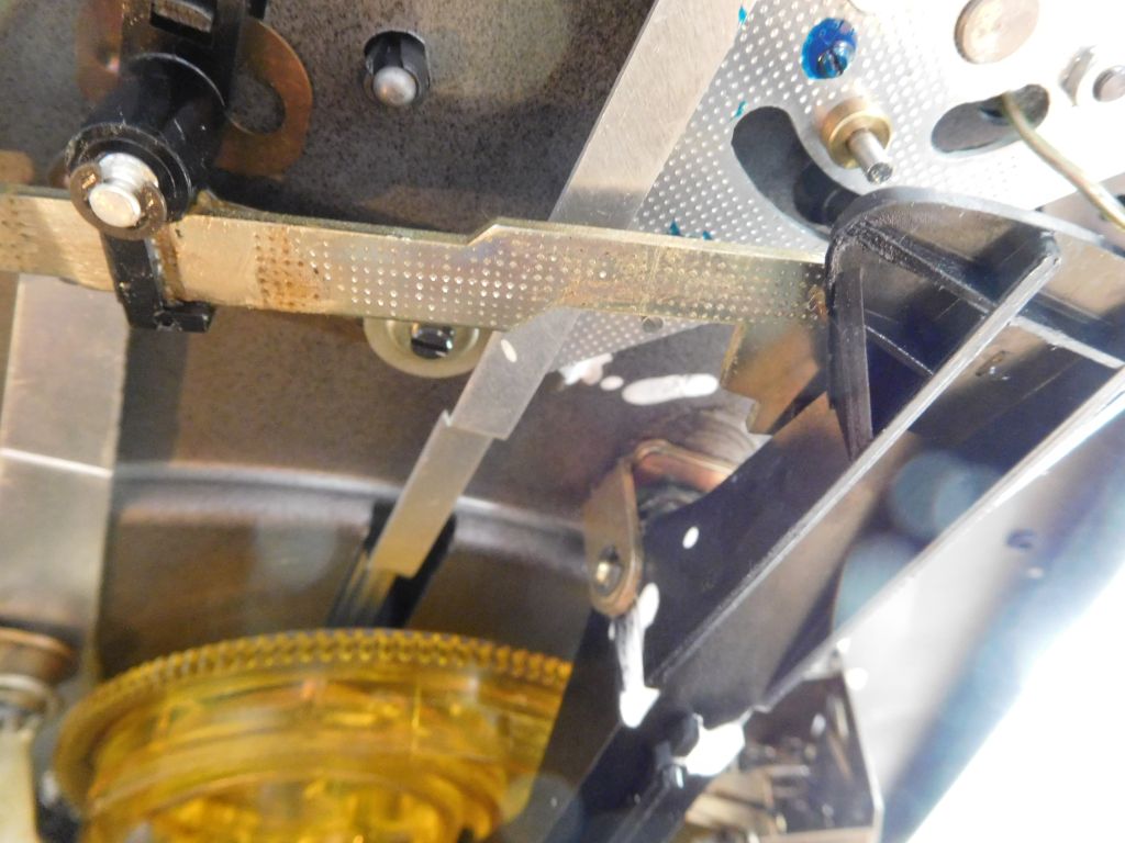 es stimmt, manuell kann man den 1224 verwenden, da der mechanische Anschlag beim Start durch die Kurvenscheibe gegeben ist. Wäre natürlich schön, wenn er voll funktionieren würde. Der dunkle Plastikhebel, den man im Bild sieht, hat auf der Seite wo der Pimpel (wirklich ein komisches Wort) aufsetzen soll, eine sehr rauhe Oberfläche. Es sieht aus wie Schmirgelpapier. Stirnseitig nutzt hier kein Schrumpfschlauch, aber ich könnte den Pimpel damit befestigen, denn wenn ich eine Schraube verwende und der Pimpel abfällt, dann könnte es zum Kurzschluss in der Elektronik darunter kommen. Die Frage ist nur, aus welchem Material muss der Pimpel sein und welchen Durchmesser muss er haben.