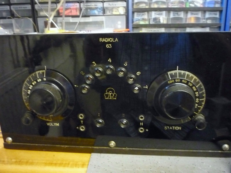 Guten Tag zusammen, an anderer Stelle hatte ich erwähnt, dass mir das Radio Radiola M63 " zugeflogen" wäre. Nun habe ich mich heute daran begeben und zusammen mit Jürgen rf eine erste Bestandsaufnahme vorgenommen: Die Schaltung ist ungefähr mit dem Radiola Gerät identisch, dessen Wiederherstellung früher einmal im Forum erläutert wurde. Lediglich die Bedienung/Handhabung unterscheidet sich. Während bei dem vorerwähntem Gerät alle Funktionen wie z.B. Anpassung am Variometer ( so eine Art Frequenz-Raster ) , Einschalten einer 2. NF Verstärkerstufe mittels Schalter erfolgte, so passiert dieses jetzt mit Steckstiften von aussen ähnlich den Stiften eines Funke Röhrenprüfers. Leider sind auch die Fehler identisch : alle 2 NF Trafo sind defekt und müssen neu gewickelt werden. Das wird eine Fleissarbeit die die Fertigstellung erst gegen Ende dieses Jahres prognostizieren lässt . Der sonstige Zustand ist für das Alter sehr gut. Evtl. vorausgegangene Reparaturen sind nicht erkennbar. Die Bilder zeigen: 1 Innenansicht, 2 einen der beiden Trafo, 3 die Front mit den Steckbuchsen 4 Innen o. Trafo, 6 Variometer, 7 einer der Wickelkondensatorn, 8 Steckbuchsen, 9 Rückseite, 10 und 11 Kontakte der NF- Verstärkung von innen und aussen. Wenn es Fortschritte gibt, werde ich darüber berichten