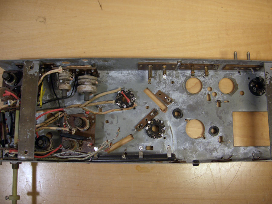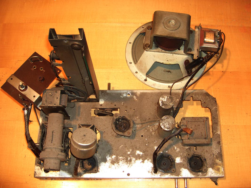 ihr braucht kein Angst vor dem Waschen zu haben. Ich wasche fast alle Chassis, in einem Kübel mit Waschmittel. Arbeite mit harter Bürste und verschiedene Pinseln. Natürlich werden erst mal alle Spulen ( wie z.b. Trafos u.s.w.) abmontiert. Skala selbstverständlich auch. Kondensatoren lasse ich in Ruhe. Die jenige die das überleben sind noch gut, können weiter dienen. Papier-Kondensatoren, schmeiße ich so wieso weg. Die sind sehr oft schon vor die Wäscherei so gut wie kaputt. Aber vorher wird alles fotografiert und aufgemalen. Später wird das Chassis komplett ausgebaut, geschliffen, poliert oder lackiert, je nachdem wie das vorher war. Aber das alles gilt meistens für Radios von 30er. Jahre. Das ist immer stark abhengich was euch, in Endeffekt wollt - einem reich das nur Staub abbürsten, anderer braucht schon etwas mehr. Ich versuche immer das Radio in so ein Zustand zu bringen, als das heute vom Werk rausgekommen ist. Unten ein paar Beispielen.