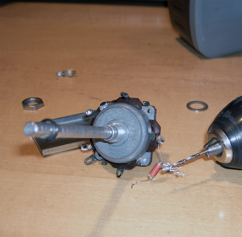 Und dann habe ich angefangen. Das Gehäuse habe ich erst nach die Seite geschoben. Als erste kam in Spiel der Abstimmungsmotor.