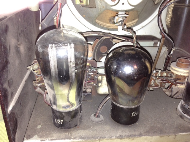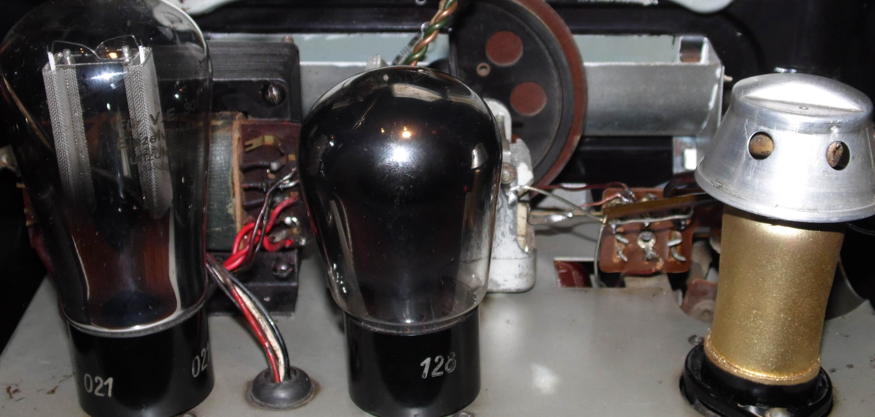 Das Chassis war total verdreckt und ich sah "schwarz" wie ich es sah. Aber ich Kämpfte mich durch, es dauerte zwar ein paar Tage bis ich den ganzen dreck ab hatte, aber es hatte sich gelohnt. Bei der Reinigung verwendete ich Stahlwolle, das ging Hervorragend! Und die RGN1064 und die RES 164 waren noch ganz und sind es heute noch. Die rechte Röhre ( auf dem Bild) ist eine C3b, diese Röhre gehört nicht in einen Volksempfänger rein. Diese flog gleich raus und ich habe mir eine AF7 zugelegt, aber dazu kommen wir noch später.