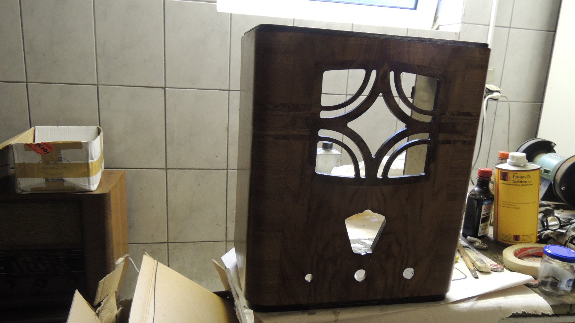 Schnellschliffgrund   Schellack-Lackieren   Wiederaufarbeitung   Wiederherstellung   unterschiedlichen   Schellack   Optische   Verdünnungslappen   Schellack-Ballen   Halogenscheinwerfer   Furnier-Beschädigung   Digitalfotoapparate   Gehäuse   zusammenschneiden   selbstverständlich   Holz-Radiogehäuses   Restaurierarbeiten   Schellack-Workshop   Nitro-Verdünnung   Philips-Gehäuse