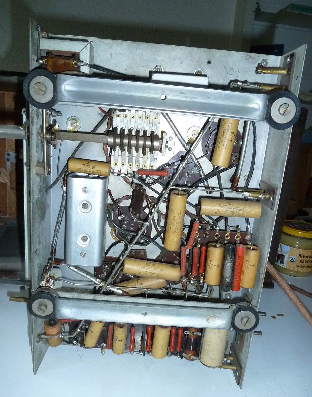 HB9: Die Kondensatoren waren noch alle in Ordnung, inklusive den Elkos, was mich ziemlich erstaunte, denn sie sind ja mittlerweile 80 Jahre alt.