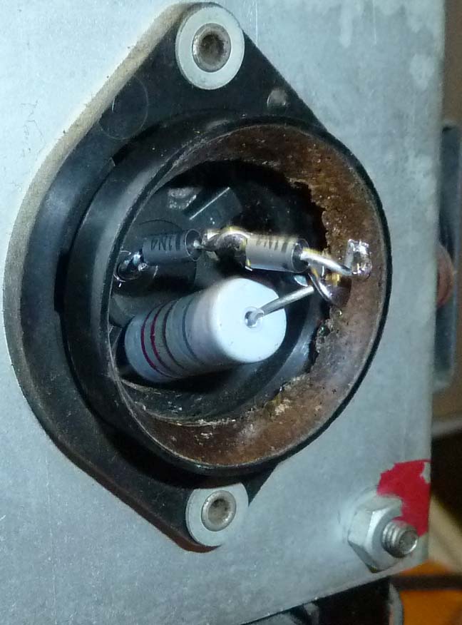 nachdem dank tatkräftiger Mithilfe von Walter und Wolfgang das Radio seinen Namen verraten hat (BF634A, Hersteller Philips Frankreich), habe ich es heute mal untersucht. Der Befund war recht erfreulich: Elkos Topzustand, viele Kondensatoren an kritischen Stellen sind keramisch und daher unproblematisch, nur wenige verdächtige Kondensatoren an kritischen Stellen, die habe ich ersetzt. Als schnellen Ersatz für die defekte AZ1 habe ich in den Sockel eine Ersatzschaltung aus Si-Dioden und einem Vorwiderstand gelötet. Das Radio gibt wieder Lebenszeichen von sich, es hat aber auch noch ein paar Problemchen. Im Bereich vom Ratiodetektor (EB91) hat es noch Wackel, vermutlich die Röhrenfassung, und auf AM hätte ich eine höhere Empfindlichkeit erwartet, da muss ich noch prüfen, ob da was verstopft ist. Bei voll aufgedrehter Lautstärke scheint zudem im NF-Teil etwas zu schwingen, da muss ich noch nachmessen. Aber immerhin habe ich sowohl auf AM als auch auf FM bereits etwas empfangen.