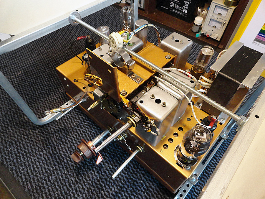 Genial ist der Arbeitsrahmen aus altem Antennenmaterial und Gewindestange. Das werde ich künftig hier auch so machen. Bei der zuletzt gemachten Reparatur eines Körting Oslo habe ich zweimal Drähte zur Ferritantenne abgerissen.