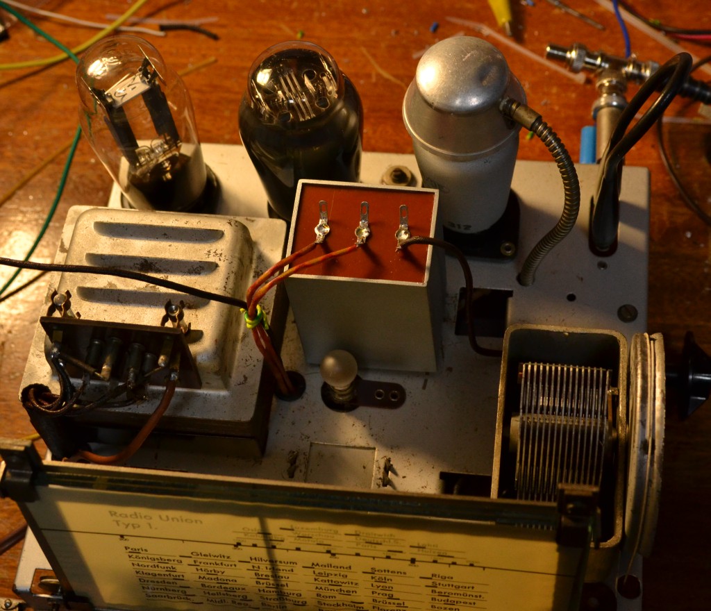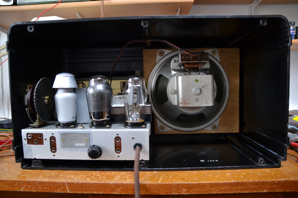 Auf dem Chassis montiert, fügt sich der Kondensator recht gut in das Gesamtbild ein. So könnte das RU1W-Chassis also original ausgesehen haben: